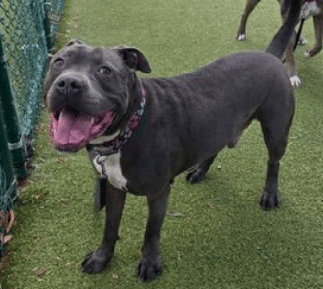 🐾 Piggle is a soulful gray pittie with a gentle heart and a playful, goofy side just waiting to shine. He may seem quiet in his kennel, but once outside, he blossoms. He loves walks, splashing in water, and showing off his favorite game: fetch with two tennis balls (always two 😂).